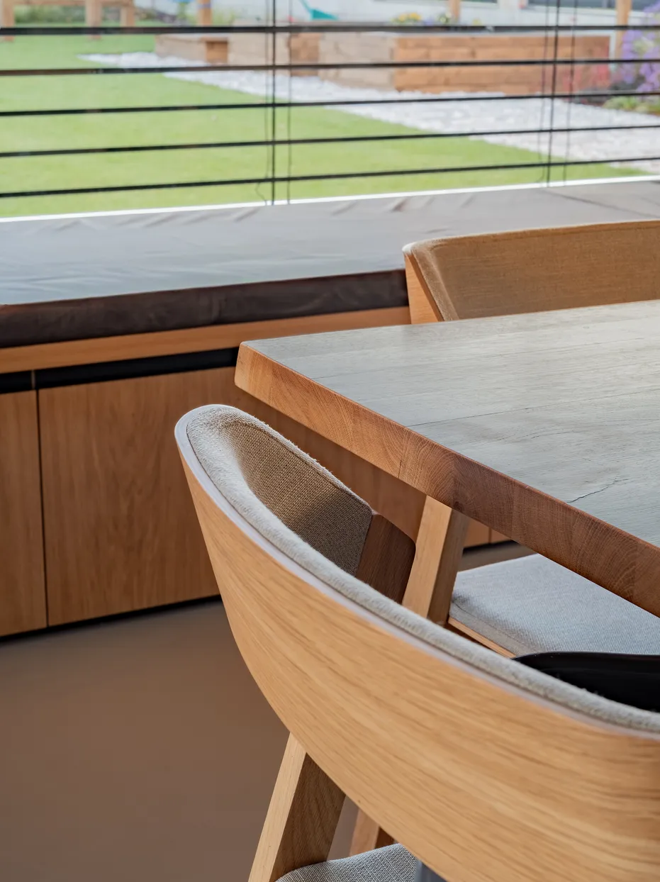 Druhé podlaží je určeno pro klidovou část domu a soukromé pokoje, doplněné o tři koupelny. Výjimečným prvkem je rozlehlá pobytová terasa s extenzivní zelení, která rozšiřuje obytný prostor a podporuje každodenní kontakt s okolní krajinou. Celý dům je navržen s důrazem na maximální komfort mladé rodiny, použití materiálů vysokého standardu, nejmodernější technologie a udržitelná řešení podporující zdravé a kvalitní bydlení.