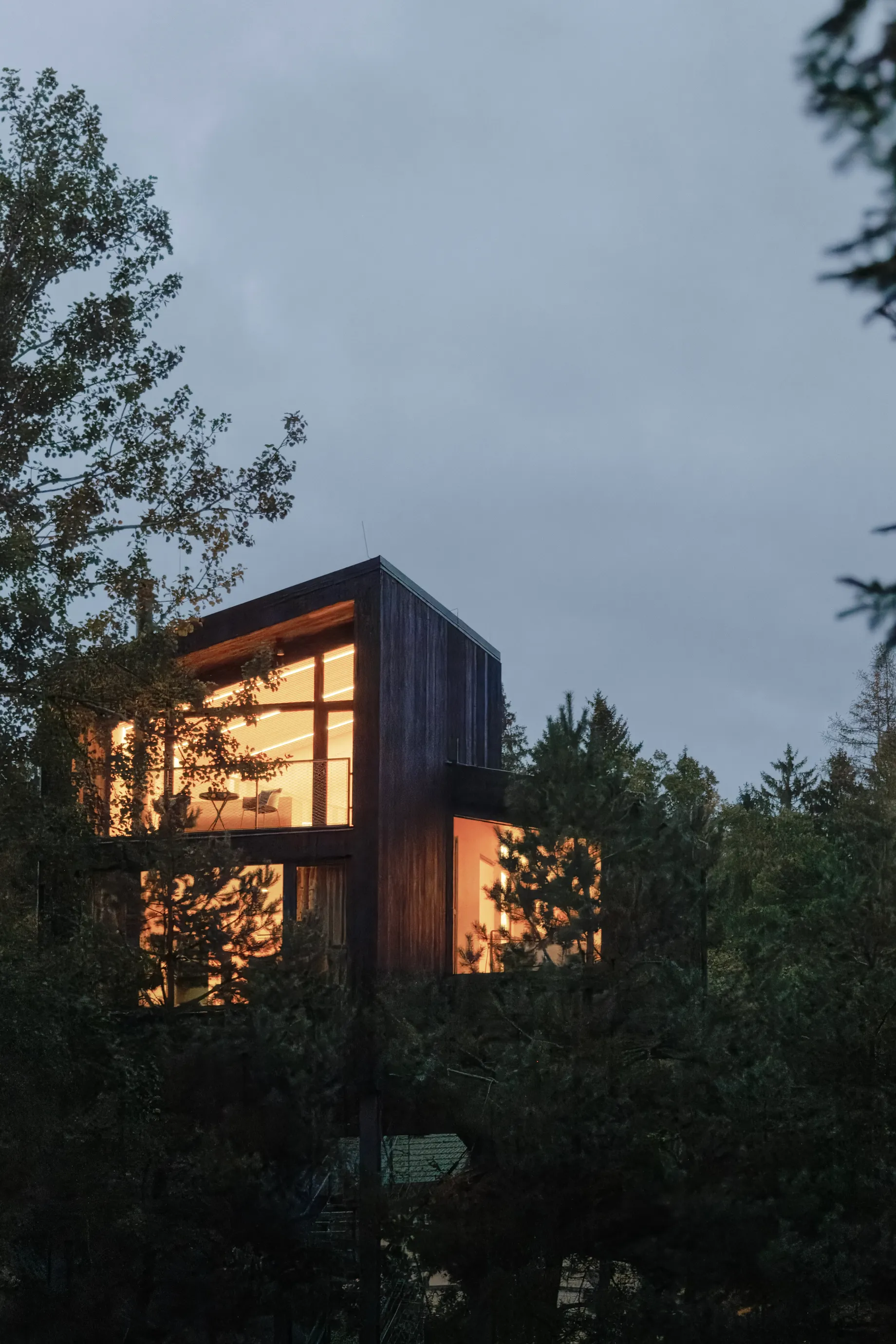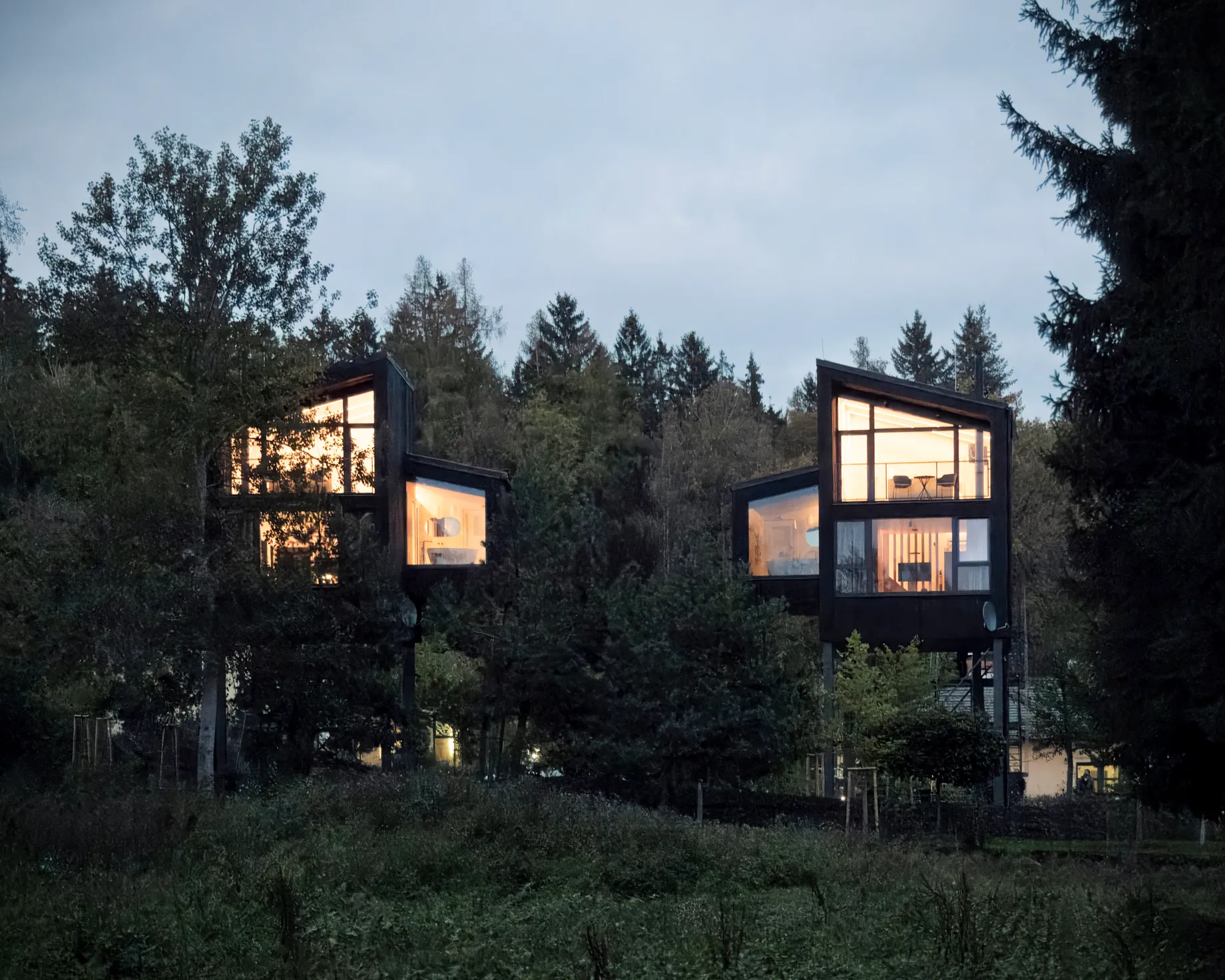 Na pomezí Vysočiny a Jihočeského kraje jsme navrhli zážitkové ubytování jako součást rozšíření hotelového resortu. Projekt zahrnuje dvě dvoupatrové dřevostavby umístěné v korunách stromů a wellness objekt zaměřený na relaxační procedury, který vytváří atmosféru klidu a regenerace.