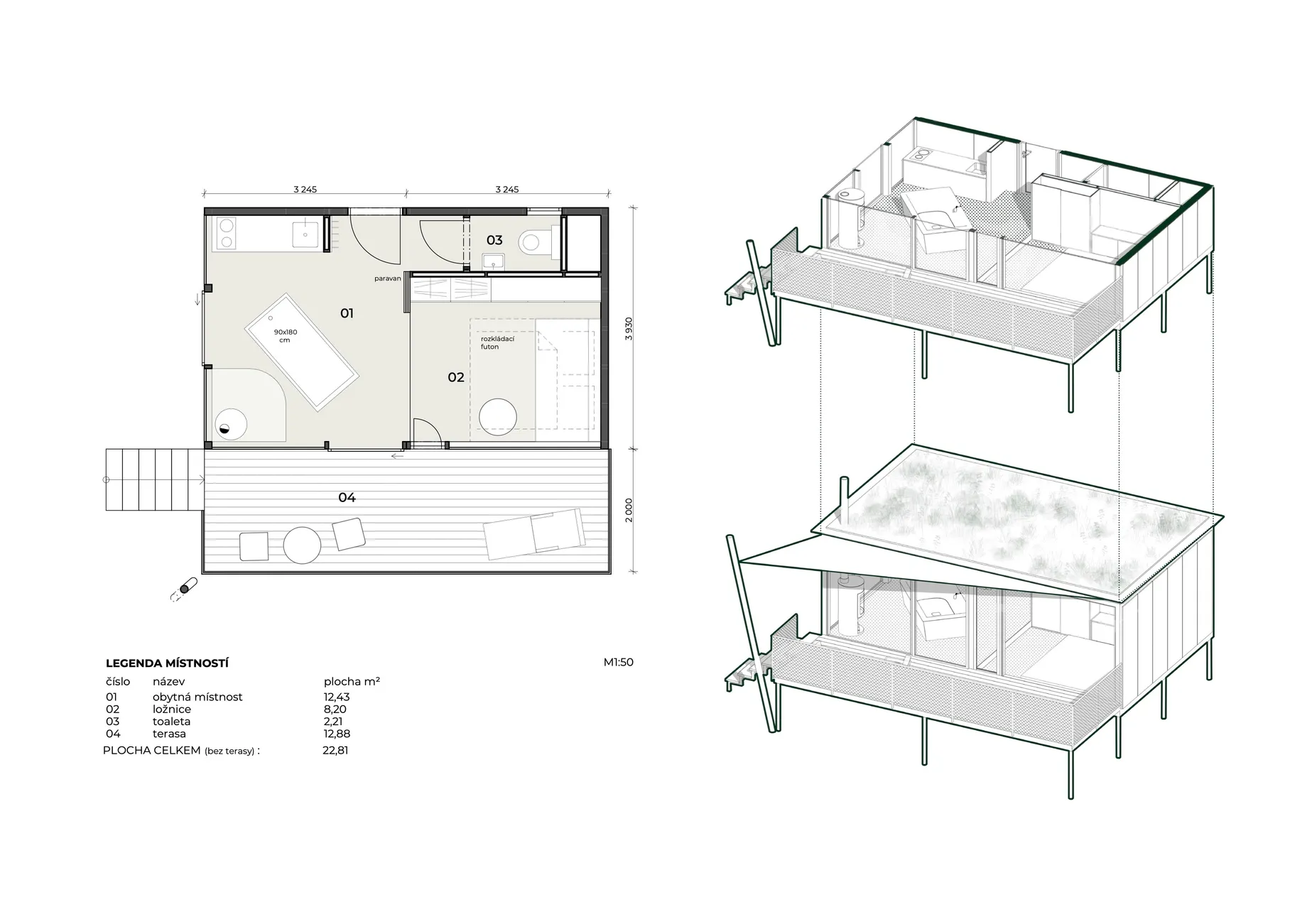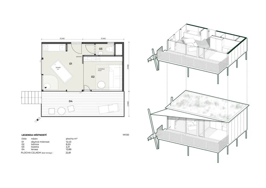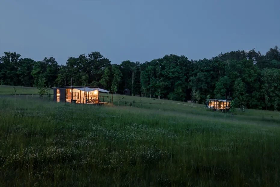 Ve spolupráci s Bayaya jsme navrhli Glamping TwoFingers v Krabčicích – jedinečné místo v přírodě, které spojuje pohodlí s klidem lesa, rybníků a luk. Nabízí ubytování od maringotek u rybníka a chat na louce až po posedy ukryté v korunách stromů, přičemž každý objekt má svou vlastní identitu. V roce 2024 získal areál TwoFingers ocenění za nejlepší glamping podle Amazing Places.