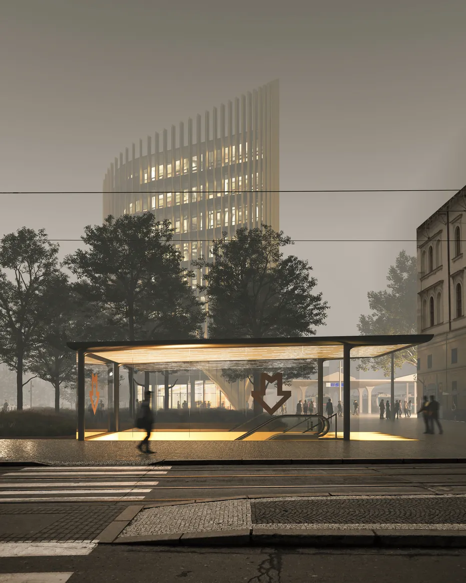Nádražím, skrze náměstí, branou do města. Toto heslo se stalo motivem návrhu jednoho z nejvýznamnějších prostorů v Praze. Řešeným územím se stal předprostor Masarykova nádraží a novostavby od Zaha Hadid Architects.