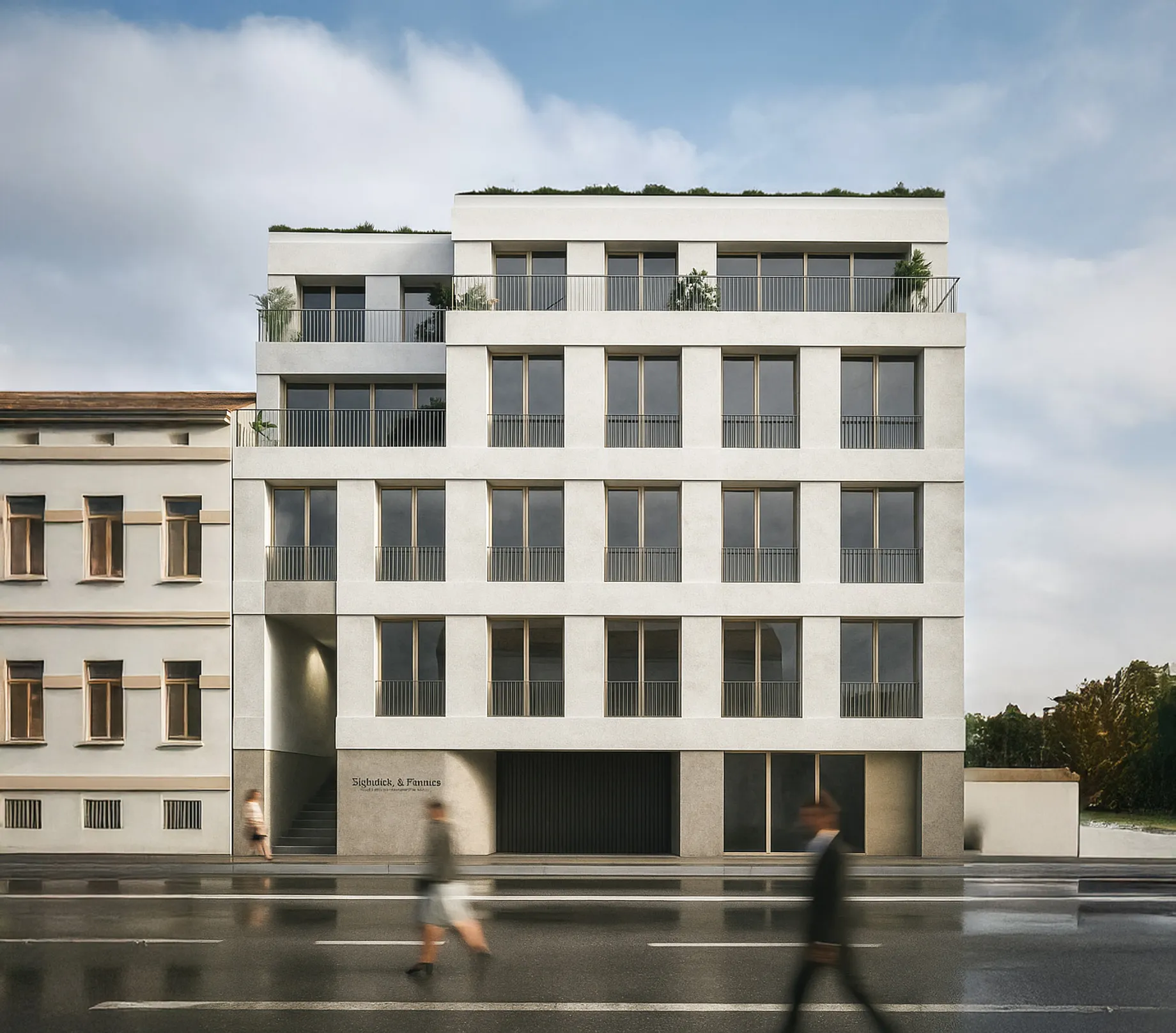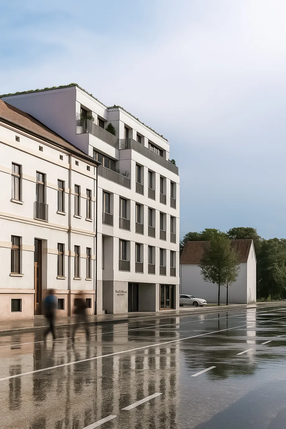 Projekt představuje soudobý městský soubor, který doplňuje dosud nedokončený blok podél jedné z hlavních městských tříd a přirozeně navazuje na charakter okolní zástavby. Kombinace bytové a administrativní funkce vytváří kompaktní strukturu s jasně definovanou uliční frontou a klidným vnitroblokem, jenž slouží jako poloveřejný zelený prostor pro obyvatele i uživatele budov. Návrh klade důraz na měřítko, kvalitu veřejného prostoru a integraci zeleně do každodenního provozu.